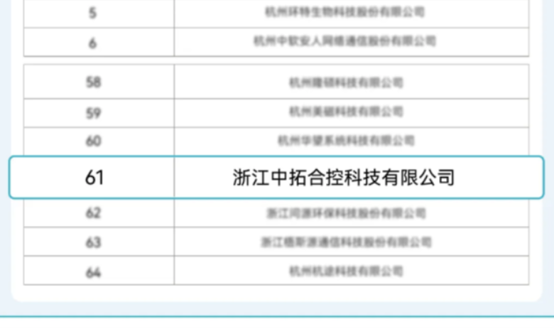 近期,浙江省经济和信息化厅公布了2025年拟重点支持的专精特新中小企业(“重点省专”)名单,中拓合控成功入选。